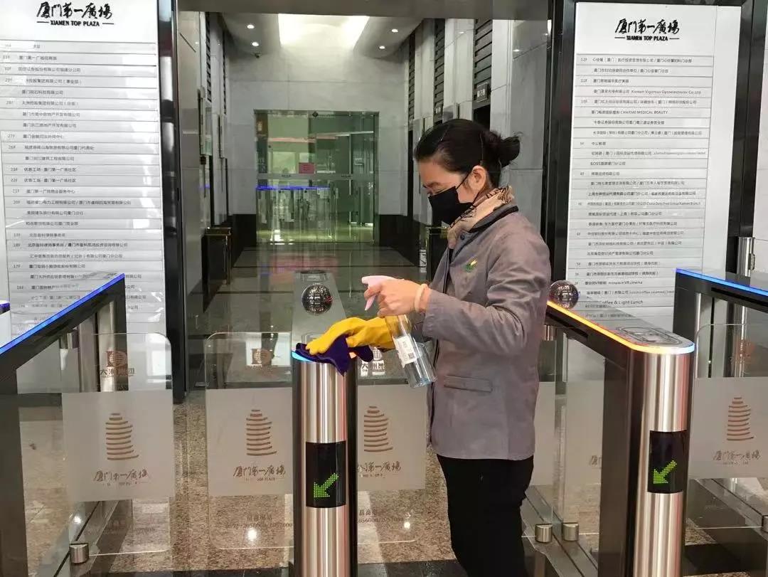大到每日對(duì)進(jìn)出人員的體溫測(cè)量登記,對(duì)辦公區(qū)域、大堂、電梯等各個(gè)大大小小公共區(qū)域的全面消毒凈化工作,以及嚴(yán)格執(zhí)行復(fù)工備案制度、每日?qǐng)?bào)告制度等;小到為客戶(hù)提供防控疫情指南以及電梯按鍵用紙、廢棄口罩專(zhuān)用垃圾桶的設(shè)置等;但凡涉及到寫(xiě)字樓的疫情防控工作,廈門(mén)第一廣場(chǎng)物業(yè)服務(wù)中心都分派專(zhuān)人進(jìn)行管理與追蹤,事無(wú)巨細(xì),只為確保每一項(xiàng)防疫工作落實(shí)到位,確保盡最大努力為業(yè)戶(hù)織就牢固的全方位辦公防疫網(wǎng)。